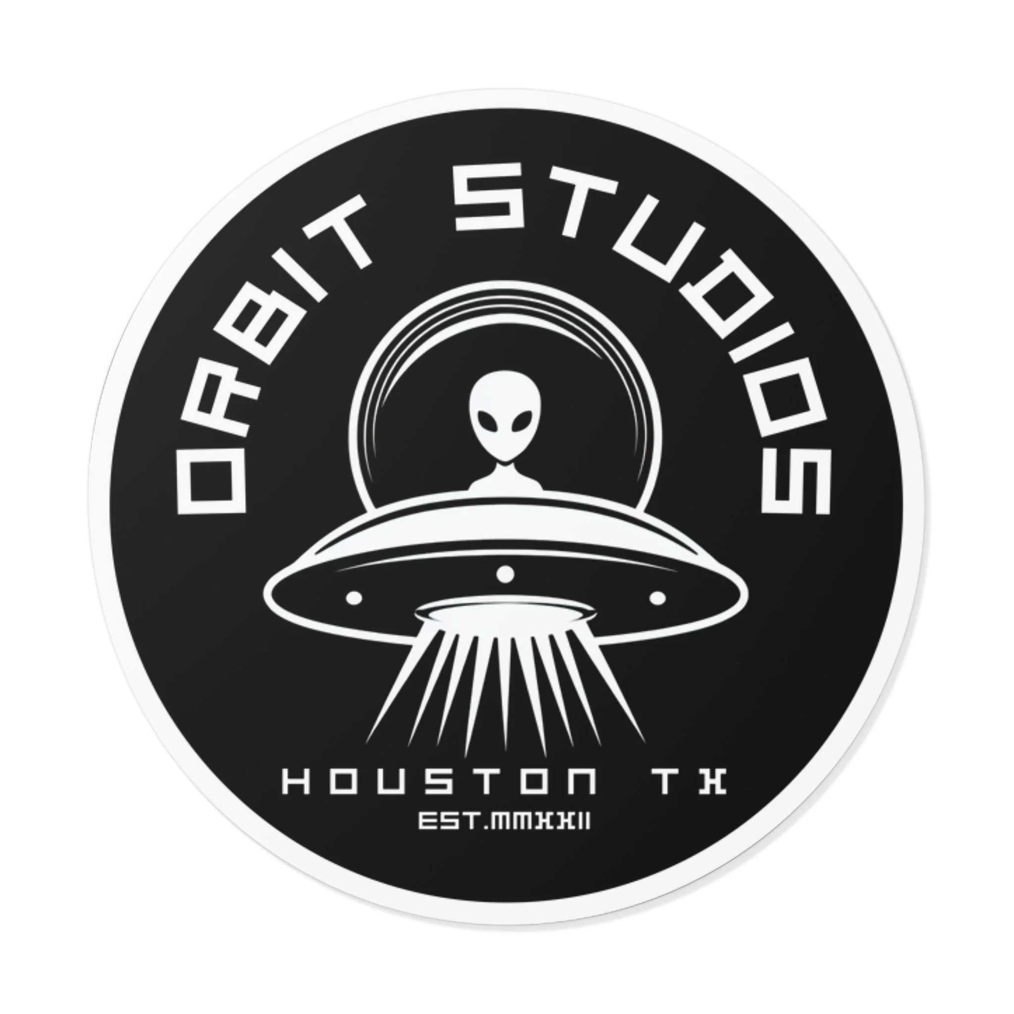 A bold, matte round vinyl sticker that channels retro sci-fi vibes. Black-and-white graphics show a classic flying saucer beaming light down beneath a minimalist alien head, framed by clean, geometric lettering that reads a studio name and location. It clings securely to laptops, water bottles, instrument cases, or studio gear—adding a little mystery and low-key attitude wherever it goes. Weather-resistant and UV-protected, this sticker keeps its crisp contrast and matte texture through sun, rain, and daily wear.